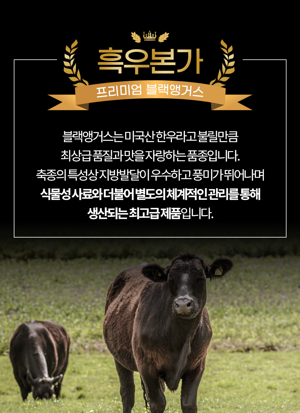 수많은 블랙앵거스의 브랜드와 부위의 고기를 까다롭게 선별하여
