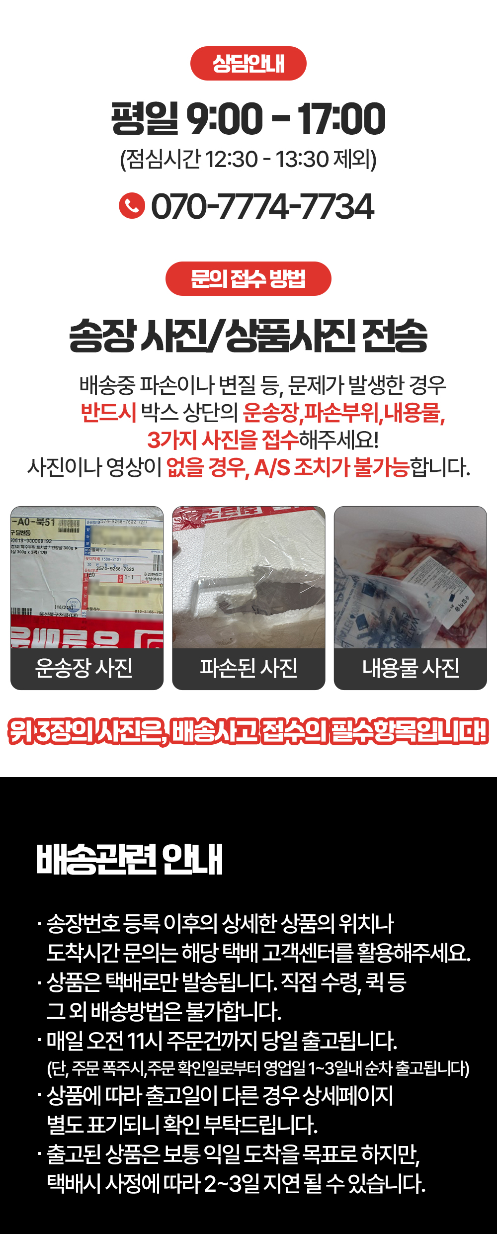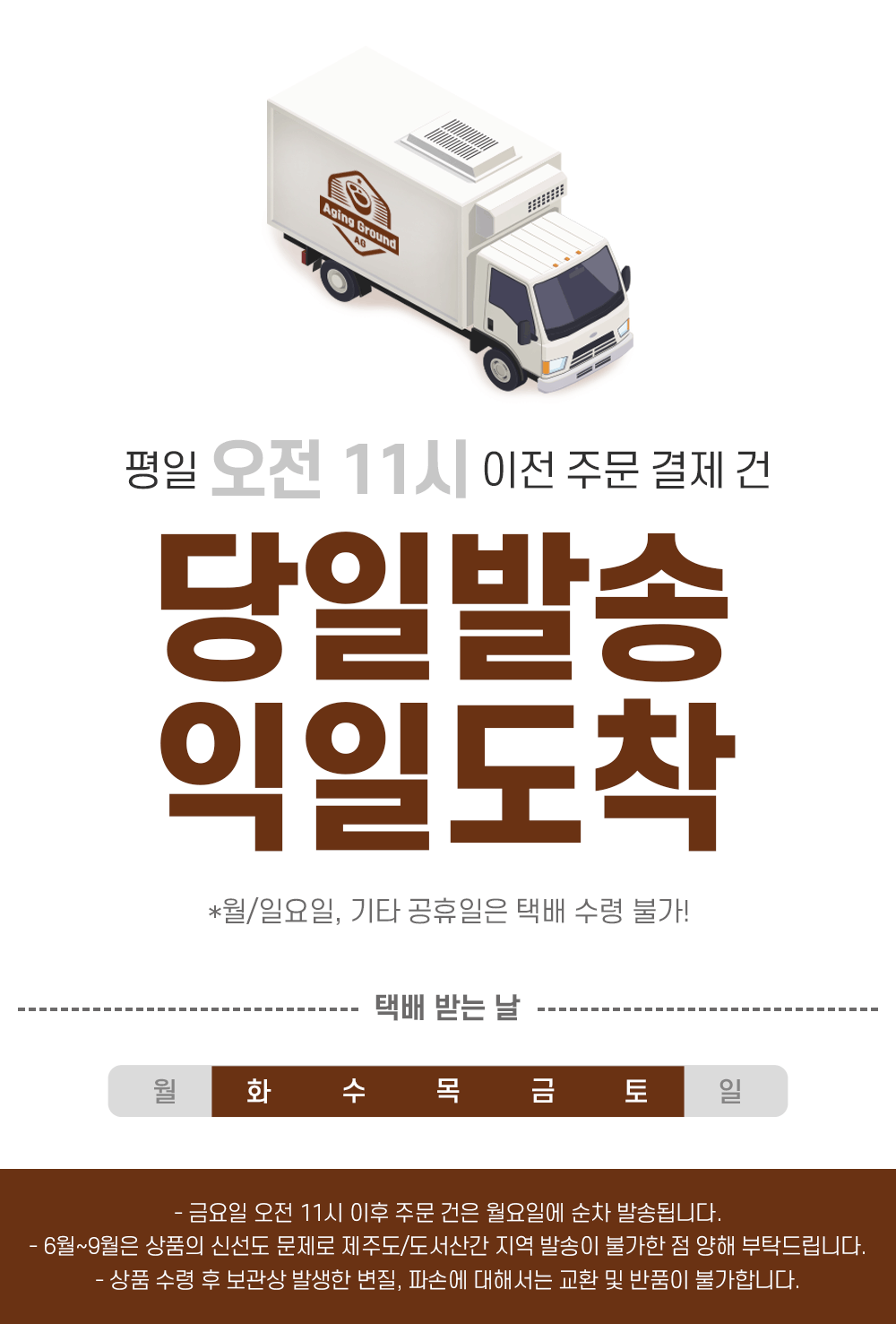 수령후 최대한 빠른 시일내에 섭취 권장, 바로 드시지 않을 시 -18℃ 이하 냉동보관, 냉장해동 후 섭취