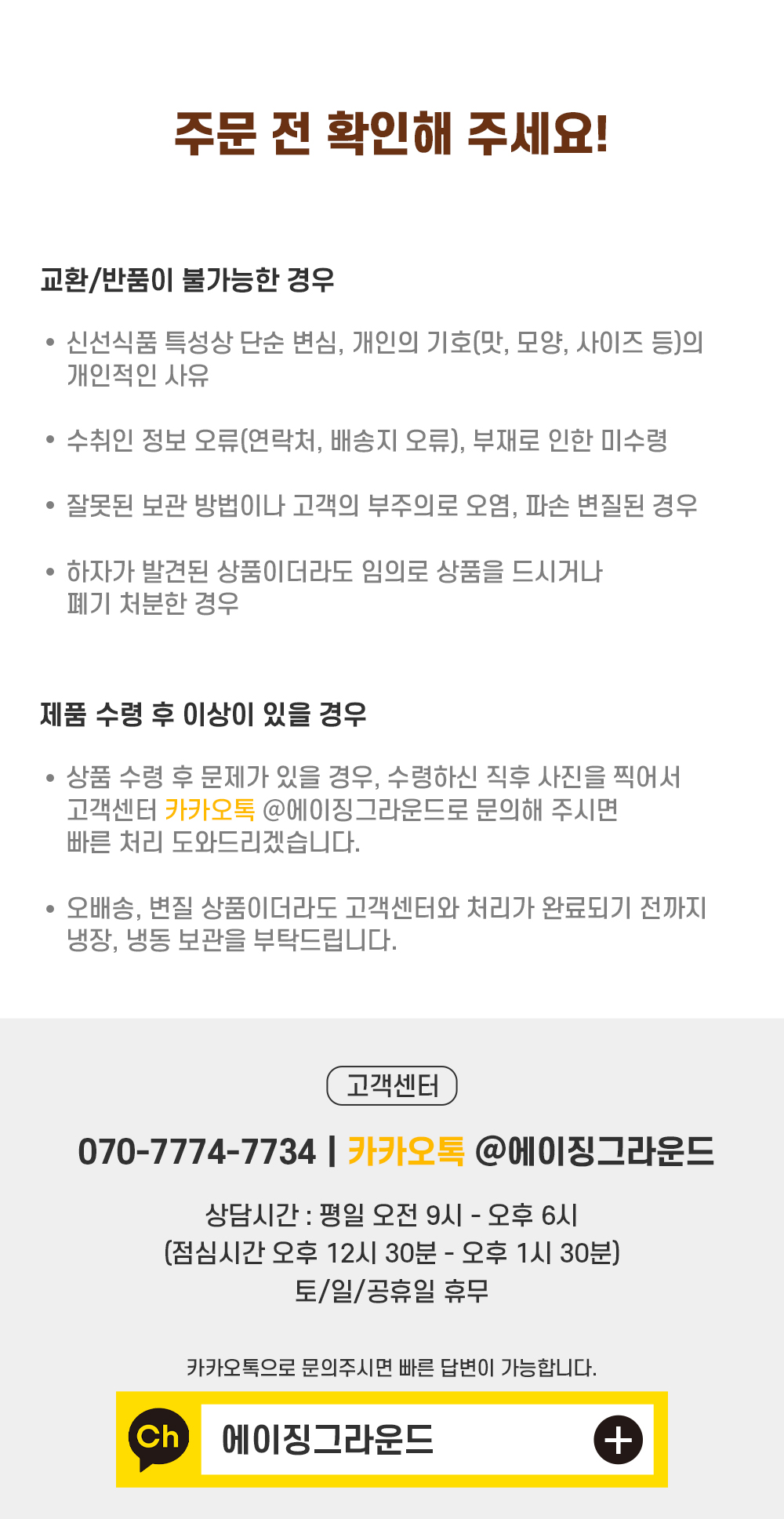 수령후 최대한 빠른 시일내에 섭취하시길 권장드립니다. 바로 드시지 않을 시엔 냉동보관 하시기 바랍니다.