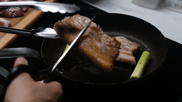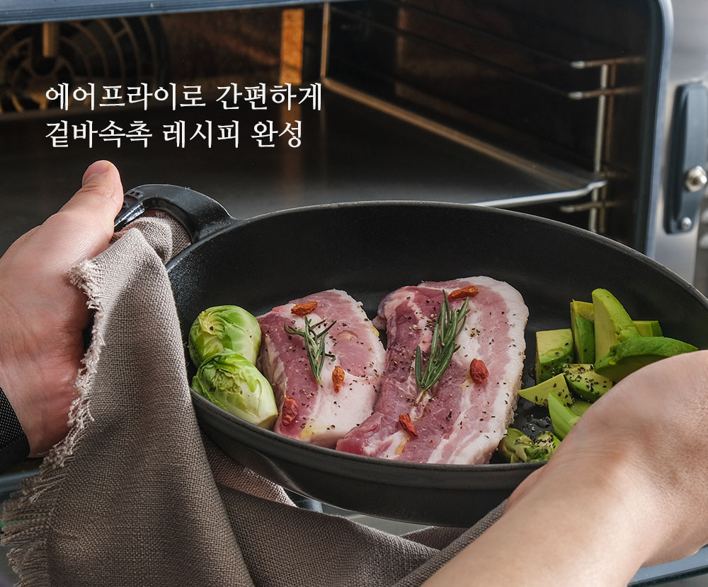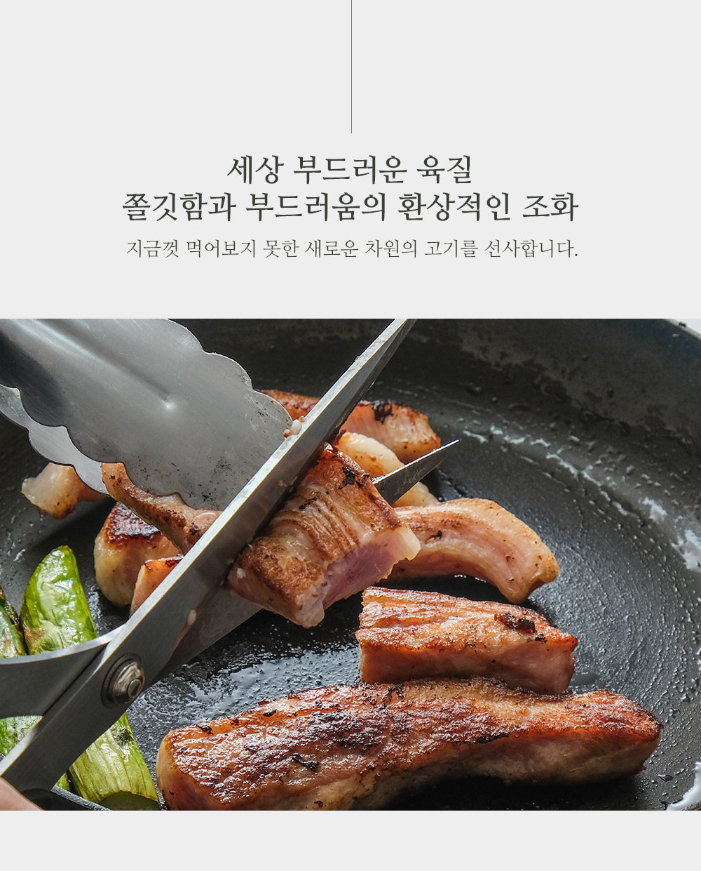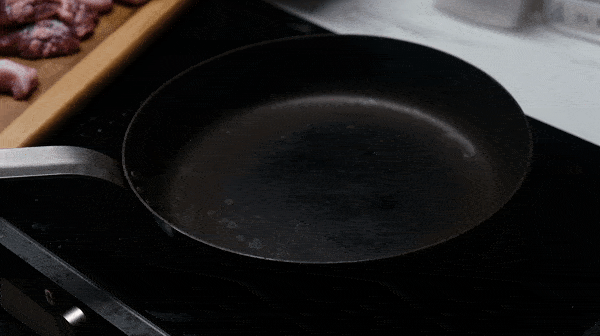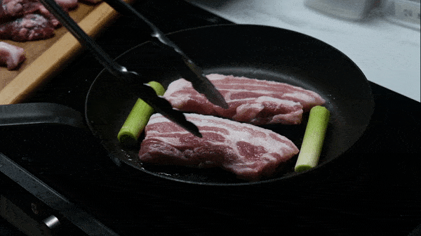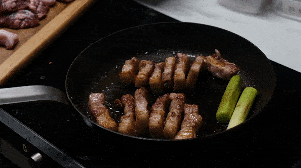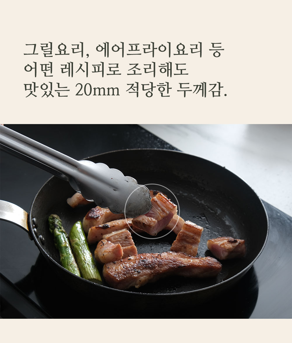 예열한 팬 위에 고기를 올려주세요
