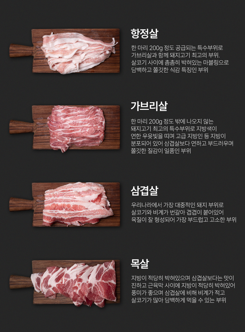 항정살 250g /가브리살 250g /삼겹살 250g /목살 250g